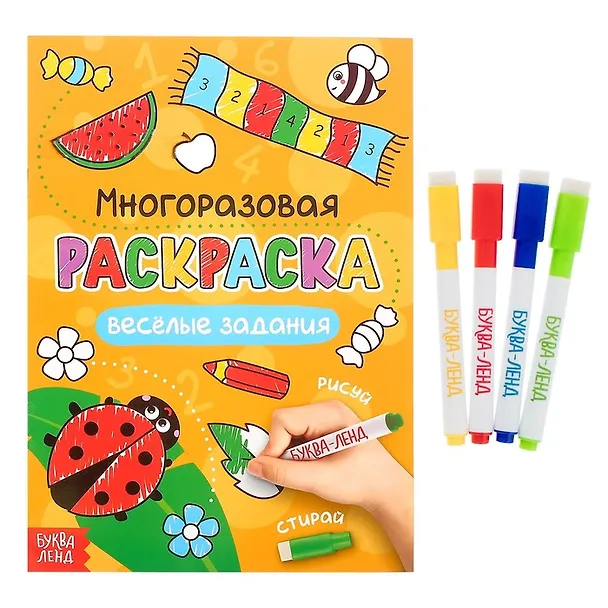 Многоразовая раскраска. Веселые задания (с маркерами)