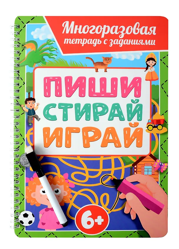 Многоразовая тетрадь с заданиями с маркером. Пиши-стирай-играй. 6+