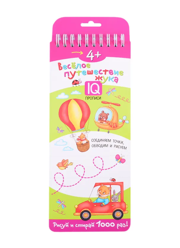 Многоразовые прописи на пружинке "Веселое путешествие жука". IQ прописи. Рисуй и стирай 1000 раз!