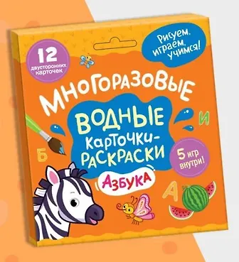 Для игры не нужны ни карандаши, ни краски специальное покрытие меняет цвет при взаимодействии с водой, а после высыхания картинку можно раскрашивать снова!На лицевой стороне отгадывайте загадки и раскрашивайте картинки.На оборотной стороне отвечайте на вопросы и запоминайте буквы. Правильно подбирать карточки помогут пиктограммы.В наборе 12 двусторонних карточек, которые помогут ребёнку развить мелкую моторику, логику, внимание и речь.