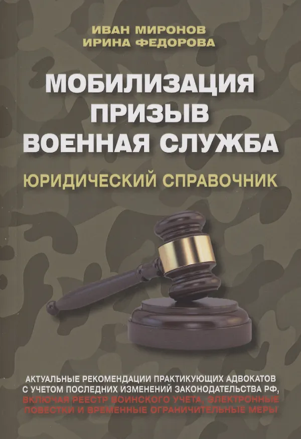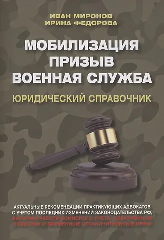 Конституция Российской Федерации (Статья 59) гласит, что защита Отечества является долгом и обязанностью гражданина Российской Федерации. Гражданин Российской Федерации несет военную службу в соответствии с Федеральным законом «О воинской обязанности и военной службе» Приведен и исследован новый закон, который уже успели прозвать «законом об электронных повестках», который принят Госдумой, одобрен Советом Федерации и подписан Президентом РФ. Реестр воинского учета, электронные повестки и временные ограничительные меры. Что важно знать! Настоящее издание рекомендовано для оказания юридической помощи мобилизованным, призывникам, военнослужащим, а так же кадровым сотрудникам, ответственным за в