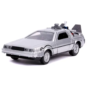 Модель Машинки Hollywood Rides 1:32 Time Machine (Back To The Future-2) 30541 по мотивам франшизы "Назад в будущее". Характеристики: Упаковка: картонный бокс Масштаб: 1:32 Материал: цинковый сплав, пластик Оригинальный и официально лицензированный продукт Бренд: Jada Toys Машина времени DeLorean — машина времени в фантастической франшизе «Назад в будущее», созданная путём модернизации автомобиля DeLorean DMC-12. Автомобилю требуется 1,21 гигаватт мощности и он должен двигаться со скоростью 88 миль в час (142 км/ч), чтобы начать путешествие во времени.