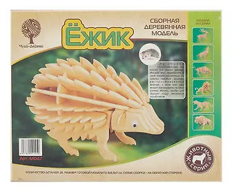 Модель сборная деревянная. Ежик. -Китай: VGA (Wooden Toys), (Животные). M047 403528