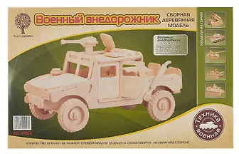 Модель сборная деревянная. Военный внедорожник. 68 деталей. -Китай: VGA (Wooden Toys), (Военная техн P063 237661