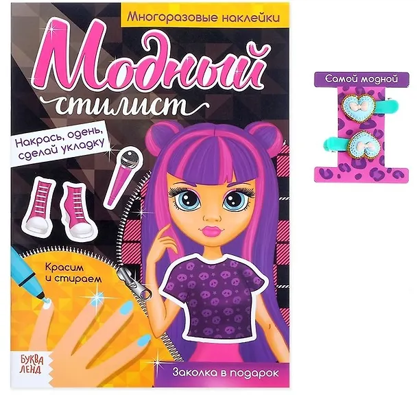 Многоразовая книга с заколками для волос «Суперзвезда» с наклейками, — отличный вариант для тех родителей, которые привыкли окружать своего малыша только лучшими и качественными вещами. За такой книжкой ваш ребёнок проведёт время с пользой и удовольствием, узнает много нового и интересного.