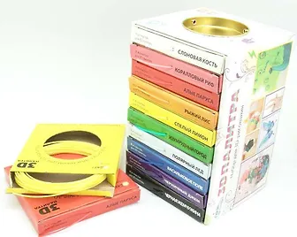 Попробуйте 3D-палитру – самый удобный инструмент для 3D-рисования. В ней есть все, что необходимо для творчества: 10 цветов яркого пластика для создания шедевров, тубус для хранения 3D-ручки и набор трафаретов для обучения объемному рисованию. Палитра сконструирована таким образом, что пластик хранится компактно и аккуратно, и не путается во время использования. В каждой палитре 10 кассет пластика по 10 метров и 5 трафаретов со схемами рисунков.