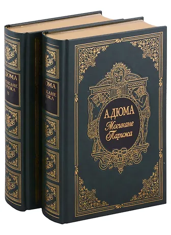 Оригинально оформленный подарочный комплект из двух томов с трехсторонним золотым обрезом, с блинтовым и золотым тиснением на обложке, с ляссе.