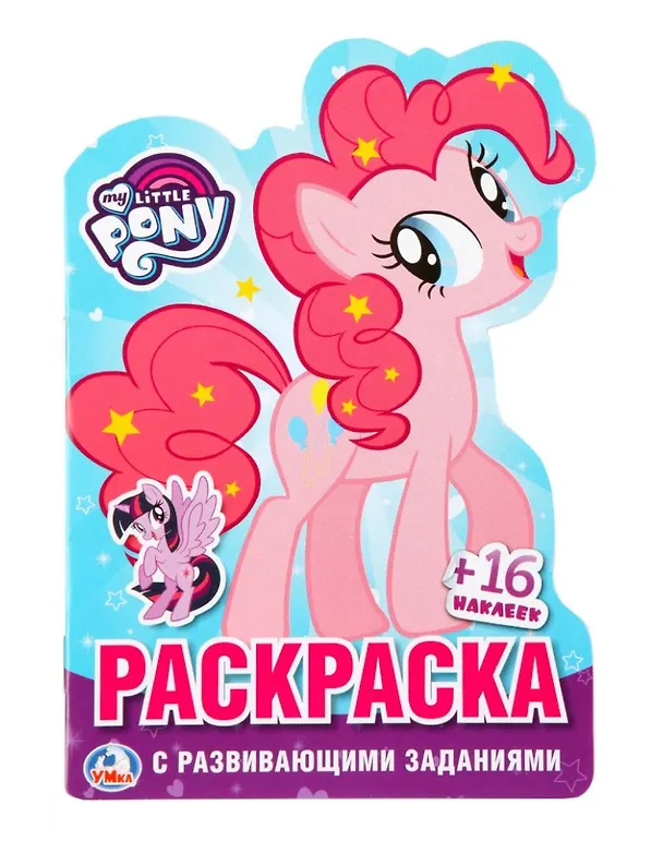 Развивающая раскраска «Мои маленькие пони» - новое предложение от ТМ «УМка», специально для поклонников знаменитого мультика «My little pony». Книга изготовлена из высококачественной белой бумаги с обложкой из плотного картона и вырубкой в виде силуэта Пинки Пай. Она содержит раскраски и развивающие задания, дополнена вкладышем с 16 цветными наклейками. Дети раскрашивают своих любимых мультипликационных героев, выполняют увлекательные задания и наклеивают стикеры. Занятия по книге развивают внимание, память, фантазию, воображение, координацию движений, усидчивость и мелкую моторику рук. Готовят руку к письму, расширяют кругозор.