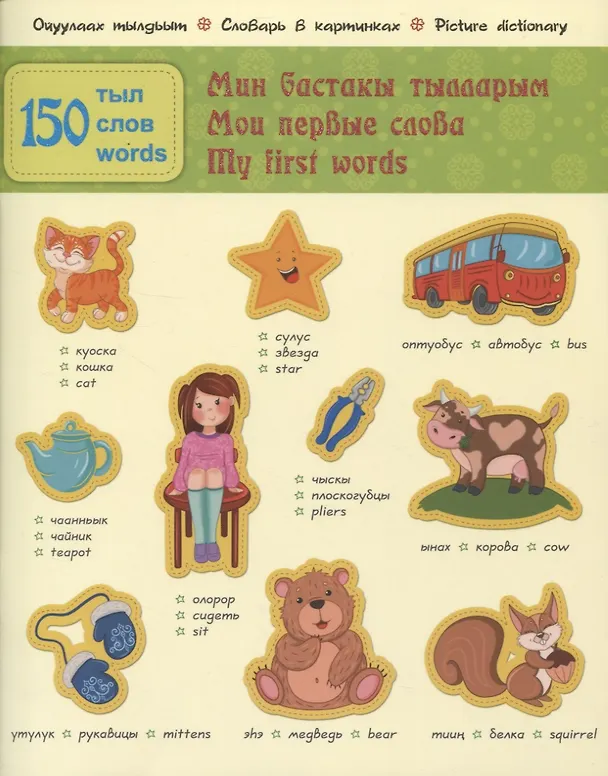 Книга «Мои первые слова» станет прекрасным подспорьем для ребенка в освоении не только родного, но и языков других народов. Издание содержит 150 часто употребляемых слов на якутском, русском, английском языках. Словарь с яркими иллюстрациями поможет маленькому человеку быстро запомнить слова. Аудиозаписи слов доступны для скачивания по QR-коду на обложке книги.