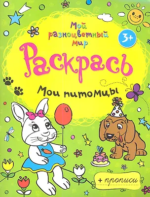 Раскраска из серии "Мой разноцветный мир" о домашних любимцах. Изображения питомцев не реалистичные, а скорее, мультяшные и милые, как на обложке. Рисунки крупные, что будет удобно для раскрашивания маленьким детям. Изюминка данной серии раскрасок в том, что на каждой странице есть две строки прописей. Слова в прописях отражают то, что мы видим на картинке: кролик, котенок, попугай, поросенок, рыбка, собака, хомяк, ящерица.
