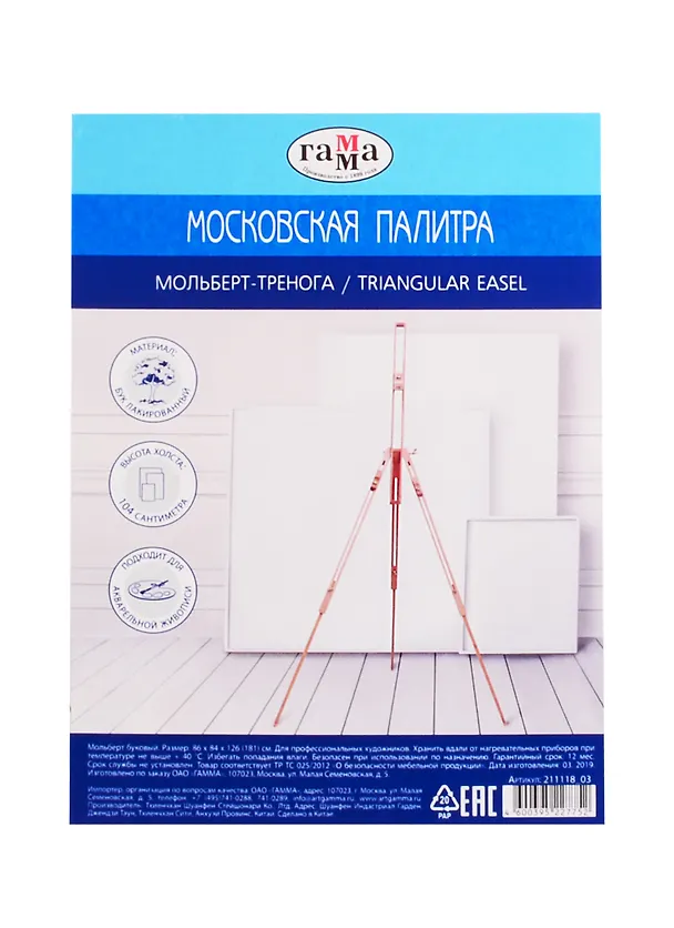 Мольберт полевой тренога "Московская палитра" 86x84x126 (181) см для холста 104 см, бук, Гамма