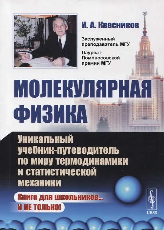 Предлагаемое пособие по разделу «Молекулярная физика» авторитетного пециалиста в области статистической физики И. А. Квасникова соответствует овременным представлениям о молекулярном движении и его макроскопических [роявлениях. Помимо прикладных вопросов оно содержит полное и последова-ельное изложение основных положений молекулярной физики. Следует отметить (стодически правильное построение всего раздела и включение в пособие мате-гатических дополнений по тем вопросам, с которыми читатель может быть по 1азным причинам не знаком или же недостаточно подготовлен. Отличительной (собенностью данного пособия является также и то, что значительное место в нем более 40% объема) уделено микроскопичес