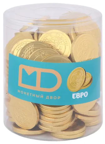 Монеты шоколадные в банке 1 Евро (6гр)