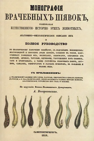 Вашему вниманию предлагается сочинение А. Воскресенского "Монографiя врачебныхъ пиявокъ", репринт с издания 1859 года.
