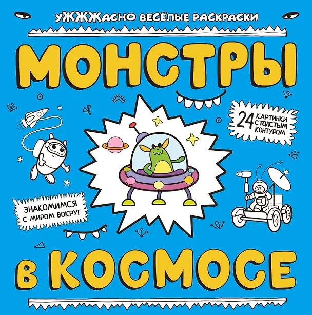 Бу! Не страшно? Конечно, ведь монстры очень весёлые и забавные. Посмотрите, какие они озорники! И чего они только не вытворяют! В серии «Ужжасно весёлые раскраски» монстры повсюду: дома, на улице, под водой, в воздухе и даже в космосе! Раскраски предназначены для самых маленьких.
