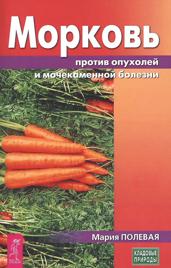 Эффективно и безболезненно растворять и выводить камни из мочевого пузыря — одно из тех уникальных свойств, благодаря которому обыкновенная морковь стала излюбленным средством нетрадиционной медицины.Морковь не только восстанавливает минеральное и витаминное равновесие организма, но и помогает бороться с большим количеством недугов, в числе которых бесплодие, импотенция, заболевания сердечно-сосудистой системы и сахарный диабет. Богатое содержание бета-каротина, фитонцидов и других полезных веществ делает морковь незаменимым средством в профилактике и лечении рака и других болезней, связанных с ослаблением иммунной системы.В книге вы найдете большое количество рецептов уникальных и высокоэфф