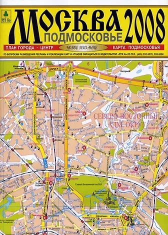 .Автомобильная карта содержит указатель улиц города, список гостиниц, рынки города, транспортные развязки, направление движения Московской области.