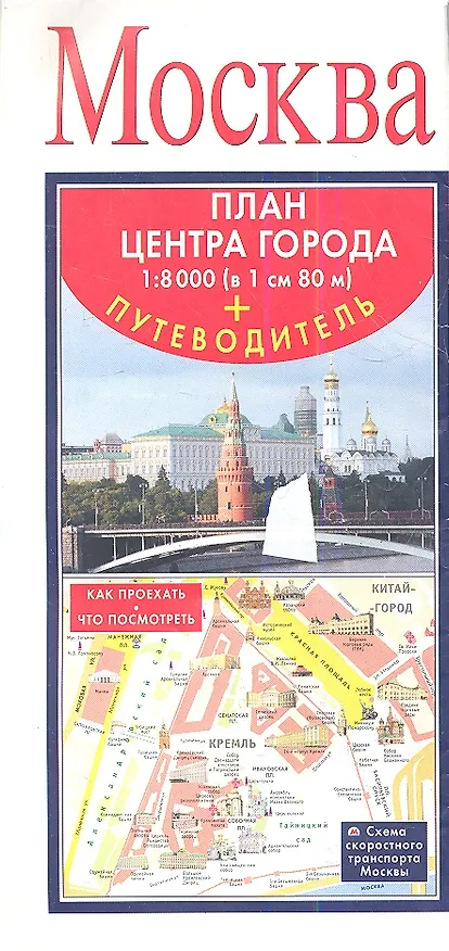 Москва. План центра города 1:8 000 (в 1 см 80 м) + Путеводитель. Как проехать, что посмотреть?