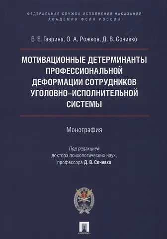 В монографии представлены сведения об основных современных теоретико-методологических и практических исследованиях в области изучения проблемы формирования профессиональной деформации сотрудников ФСИН России. Рассматриваются социальные и психологические детерминанты, лежащие в основе формирования профессиональной деформации сотрудников ФСИН России. Предлагаются психологические рекомендации по организации психокор-рекционной работы с сотрудниками УИС по предупреждению формирования профессиональной деформации и ее профилактике.
