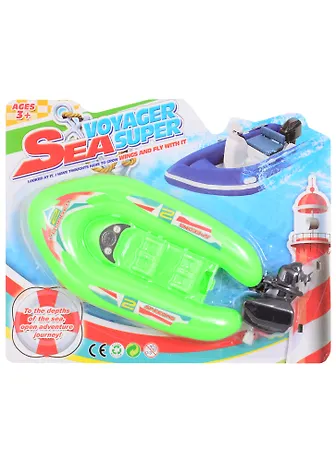 Игрушечная моторная лодка с заводным механизмом подарит малышу много радостных эмоций! Стоит покрутить рычаг на «моторчике» лодки, как игрушка шустро поплывет по воде. Лодку следует запускать только в закрытых водоёмах или в бассейне.