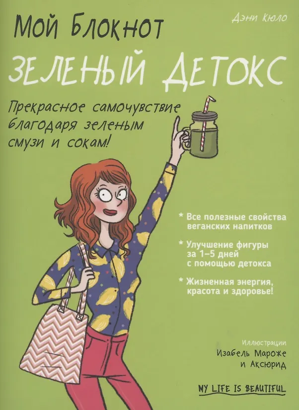 Притягательная обложка салатового оттенка, таблички со свойствами продуктов, разнообразные рецепты, программы детокса