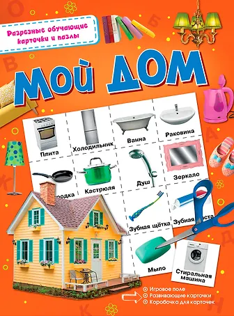 Каждому малышу интересно всё, что находится вокруг него. Он изучает разные предметы, узнаёт, как они называются, пытается ими пользоваться. В этой большой и красочной книжке мы познакомим ребёнка с тем, что окружает его дома, что он видит в детской комнате, в гостиной, в ванной и кухне. В книге три развивающих игры - лото "Мой дом", пазл и карточки-мемори. Раскладывая карточки с изображениями основных предметов, встречающихся дома, ребёнок обучается, развивает мышление, память, речь и мелкую моторику. Книги из серии "Разрезные обучающие карточки и пазлы" помогут малышам стать самыми умными и сообразительными!