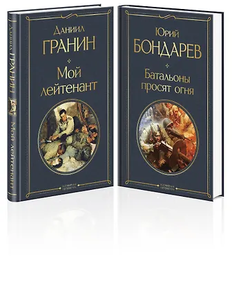 В комплект вошли книги из серии «Всемирная литература» двух выдающихся писателей-фронтовиков Даниила Гранина («Мой лейтенант») и Юрия Бондарева («Батальоны просят огня»).
