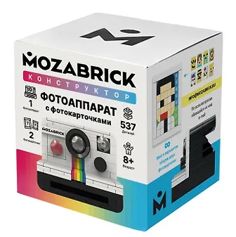 Конструктор MOZABRICK Фотоаппарат с фотокарточками – яркий конструктор, который отлично подходит в качестве подарка и креативного украшения интерьера! В наборе 537 деталей. С помощью них можно собрать фотоаппарат и две фотокарточки. Чтобы собрать забавные фотокарточки необходимо: зайти к нам на сайт, выбрать картинку на свой вкус и собрать ее по инструкции. Так же в наборе есть бумажная инструкция с понятными схемами сборки. Сборка нашего конструктора MOZABRICK – это отличный способ провести время весело и с пользой. Пластмассовый конструктор состоит из разноцветных элементов, которые легко собираются и разбираются, поэтому он помогает развивать мелкую моторику рук. Набор изготовлен из безоп