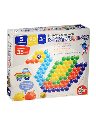Мозаика настольная (01537) (5 цветов) (90 фишек) (D=35мм) (3+) (коробка)