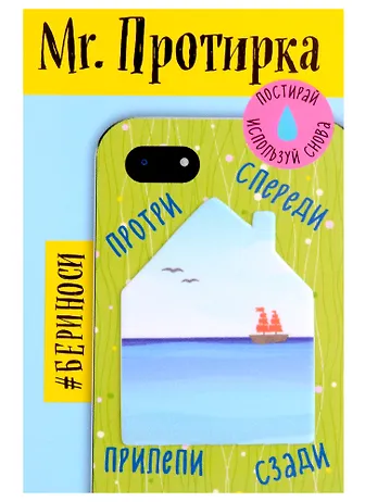 Мягкой стороной он очистит экран твоего телефона или планшета. Липкой стороной приклеится на заднюю панель, чтобы всегда быть под рукой!
