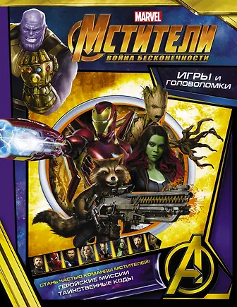 «Мстители. Война Бесконечности. Игры и головоломки» — альбом с творческими заданиями и головоломками, созданный по мотивам историй супергероев Marvel.
