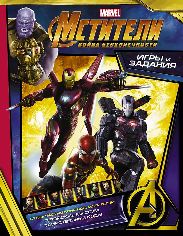 «Мстители. Война Бесконечности. Игры и задания» — альбом с заданиями и раскрасками, созданный по мотивам истории супергероев MARVEL.