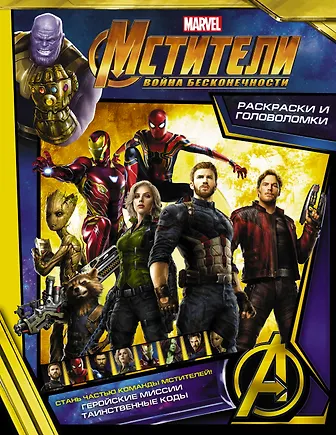 «Мстители. Война Бесконечности. Раскраски и головоломки» — альбом с раскрасками и заданиями созданный по мотивам популярной серии фильмов о супергероях MARVEL.