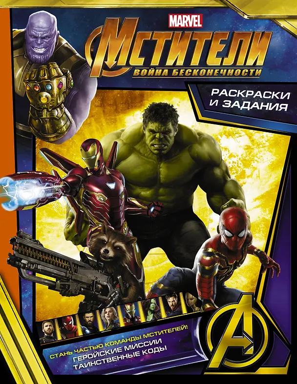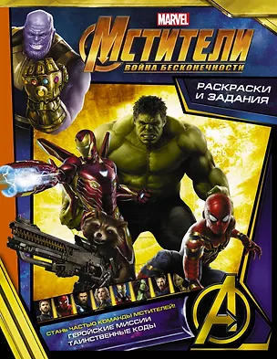 «Мстители. Война Бесконечности. Раскраски и задания» — альбом раскрасок с заданиями, созданный по мотивам историй о команде супергероев MARVEL.