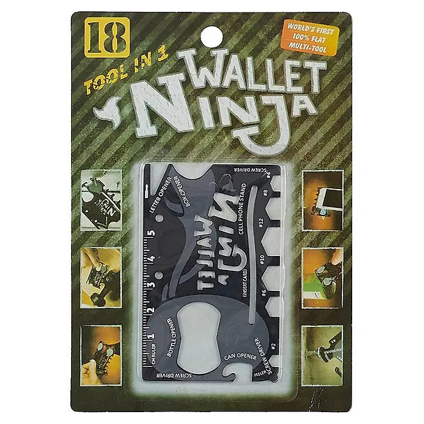 «Ниндзя-карта» – это удивительный инструмент, совмещающий в себе свойства целых 18! С ней вы сможете открыть консервную банку, аккуратно распечатать письмо, закрутить болт, раскрутить маленький винтик, открыть бутылку любимого напитка и сделать многие другие полезные вещи! По размеру «Ниндзя-карта» такая же, как обычная пластиковая карта, поэтому вы можете носить её с собой в кошельке или визитнице.