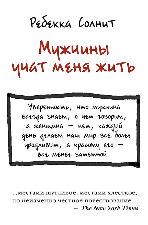 Эта книга — глубокий, всесторонний разговор о женском голосе. Ребекка Солнит рассказывает не только о менсплейнинге, символизирующем глухоту к этому голосу, — она затрагивает и другие острые, болезненные темы, каждая из которых громко свидетельствует об угнетении женщин. Жестокость, насилие, равнодушие и замалчивание — журналистка с холодной головой и беспощадной честностью обличает все виды дискриминации женщин. И речь не только о социальных проблемах; здесь пойдет разговор о кино и о живописи, о прозе Вирджинии Вулф и о реальных историях женщин со всего мира. Если вы давно хотели разобраться в феминистской повестке и начать идти в ногу со временем, то эта книга стоит вашего внимания.