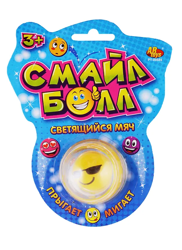 Мяч светящийся Смайл Болл на батарейках (PT-00685) (2 вида в асс.) (блистер)