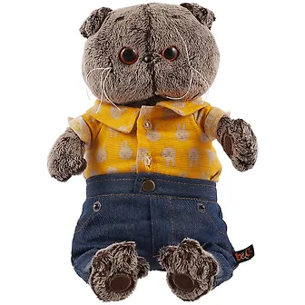 Мягкая игрушка Басик в джинсовых шортах и желтой рубашке (25 см)