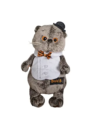 Такая замечательная игрушка будет интересен как малышам, так и детишкам постарше, как девочкам, так и мальчикам, а так же подросткам и взрослым. Басик, безусловно, доставит море веселья и радости Вам и Вашему ребёнку. Детализировано проработанный, милый и трогательный котик, следящий за модными тенденциями и любящий меняться, обязательно привлечет внимание Вашего ребёнка, заинтересует его к игре и станет его любимой игрушкой. Басик - это забавная мягкая игрушка, в виде миловидного круглобокого котика темно-серого цвета, с маленькими, упущенными вперед ушками и черным носиком - кнопочкой. Забавная мордочка Басика с длинными усами и выразительными большими темно – коричневого цвета глазками ни