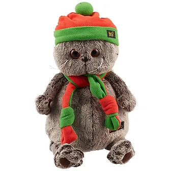 Мягкая игрушка Басик в оранжево-зеленой шапке с шарфиком (30 см) (Ks30-087)