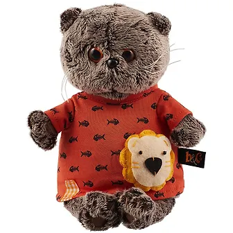 Мягкая игрушка Басик в оранжевой футболке с львенком (19 см)