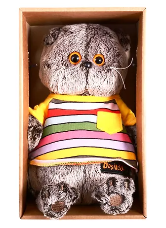 Мягкая игрушка Басик в полосатой футболке с карманом (22 см) (Ks22-147)