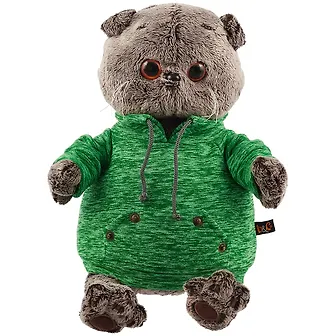 Мягкая игрушка Басик в зеленой толстовке с карманом-кенгуру (30 см)