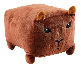Действительно потрясающая игрушка, которая и выглядит очень интересно и эмоций дарит множество. Капибара похож на мини-пуфик, у него вышитая мордочка, которая забавно выглядит на квадратном тельце. Игрушка упругая, сшита из очень приятной ткани, не маркая. Выглядит очень качественной, все швы ровные и крепкие.