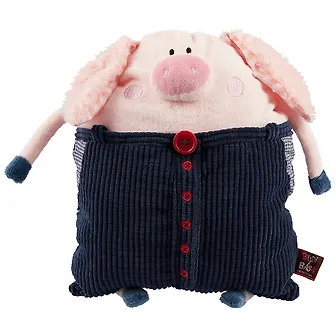 Подушка Эмик – Подушка из софта в форме поросёнка мальчика в тёмно-синих вельветовых штанишках с красными пуговками, шлёвками и кармашками.