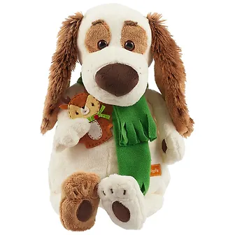 Мягкая игрушка Такса Бартоломей в шарфе и с оленем (33 см) (Bart33-009)