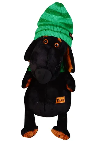 Мягкая игрушка Такса Ваксон в зеленой шапке и шарфе (29 см) (Vaks29-009)