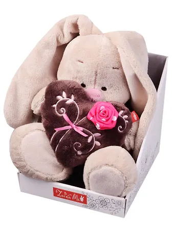 Мягкая игрушка Зайка Ми с коричневым сердечком с розочкой (18 см) (SidS-178)