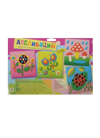 Этот набор отлично подойдёт для первого знакомства малышей с аппликацией. Простые картинки и небольшое