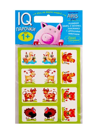 IQ-Парочки «Кто на ферме живёт?» — это увлекательная настольная игра для развития воображения и моторики ребёнка. Карточки познакомят ребёнка с домашними животными. Набор состоит из 24 объёмных карточек с цветным изображением животных.